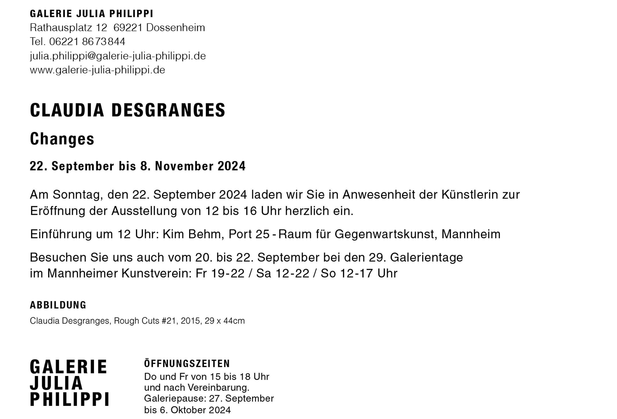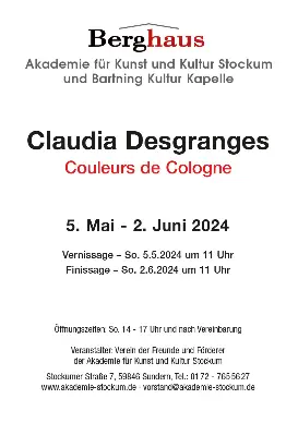 Die Arbeiten von Claudia Desgranges werden bis Frühjahr 2027 zu sehen sein. Eine Besichtigung ist nach Vereinbarung montags bis freitags zwischen 9.30 und 17.00 Uhr möglich.